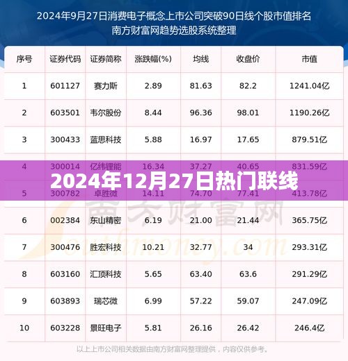随着科技的飞速发展和互联网的普及,联线已经成为人们生活中不可或缺的一部分,在2024年12月27日这一天,热门联线成为了人们关注的焦点,本文将围绕这一主题展开,探讨热门联线的现状和未来发展趋势。