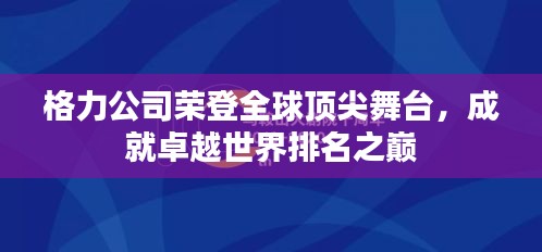 随着全球化的步伐加快,许多中国企业逐渐走向世界舞台,展示了其卓越的实力和影响力,在这些企业中,格力公司凭借其不懈的努力和创新精神,不仅在中国国内取得了显著的成绩,而且在全球范围内也获得了高度的认可,我们有幸聚焦于这家杰出的企业,探讨其在世界范围内的最高排名及其背后的成功因素。