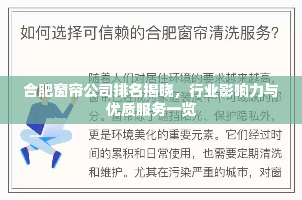 随着现代家居装饰的多样化需求,窗帘作为室内环境的重要组成部分,其选择与设计日益受到人们的关注,在合肥这座美丽的城市中,窗帘行业也在不断发展壮大,本文将探讨合肥窗帘公司的排名及其行业影响力。