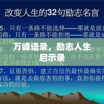 在人生的旅途中,我们总会遇到各种挑战和困难,面对这些困境,我们需要一种力量,一种信念来支撑我们前行,万峰语录,正是这样一种激励人心的存在,它给予我们力量,让我们勇敢面对生活的挑战。