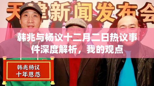 随着网络信息的飞速发展,公众人物的一举一动都备受关注,关于韩兆和杨议在十二月二日的热议事件在社交媒体上引发了广泛讨论,作为公众人物,他们的言论和行为无疑会引发公众的关注与热议,本文将围绕这一事件展开论述,深入分析事件背后的各种观点,并提出个人的看法和理由。