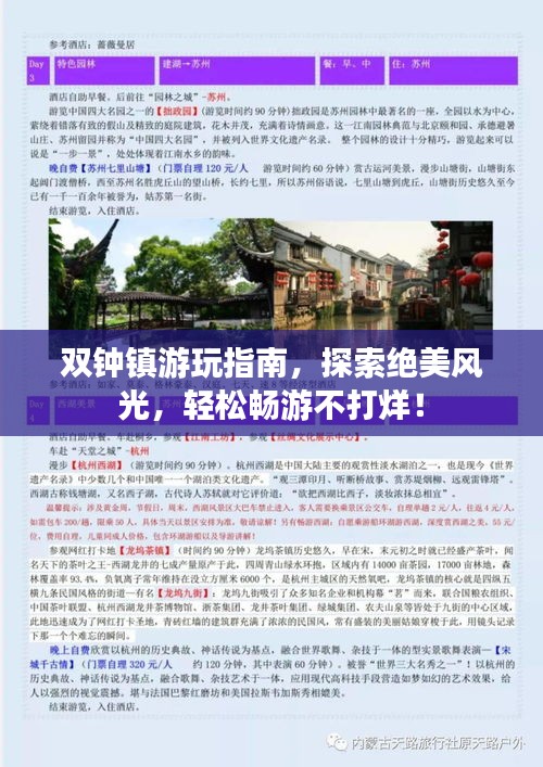 双钟镇,一个充满历史韵味与自然风光的旅游胜地,以其独特的魅力吸引着无数游客,本攻略将带您领略双钟镇的精华,让您在短暂的时间内尽情享受这片土地的美丽与风情。