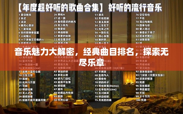 音乐是一种跨越国界、沟通人心的艺术形式,不同的音乐流派、不同的曲风,构成了丰富多彩的音乐世界,在这个世界中,每一首歌曲都有其独特的魅力,吸引着人们的关注,我们将聚焦于音乐世界中的曲子排名,探索那些令人陶醉的旋律背后的故事。