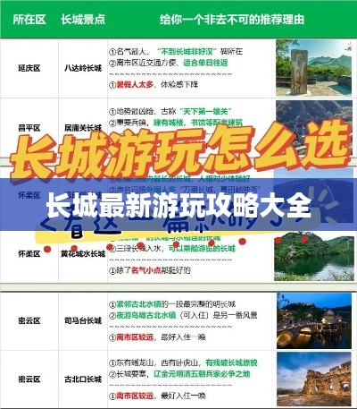 长城,这条历经千年沧桑的历史遗迹,如今已成为中国旅游的一大亮点,随着季节的变化和时间的推移,长城展现出了不同的风貌,本文将为你带来长城的最新攻略,助你更好地了解长城的魅力,规划你的行程。