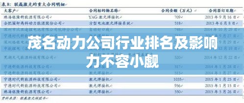 茂名市,广东省的能源大市,以其丰富的石油资源和化工产业著称,在这座充满活力的城市中,动力工程领域的公司扮演着举足轻重的角色,本文将深入探讨茂名动力公司的排名及其行业影响力。