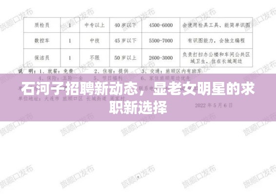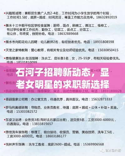 对于这些显老女明星来说,石河子的招聘信息背后既有机遇也有挑战,机遇在于这些行业提供了广阔的发展空间和新的人生舞台;挑战则在于她们需要适应新的工作环境和角色定位,在这个过程中,她们需要不断地学习和成长,以适应不断变化的市场需求。