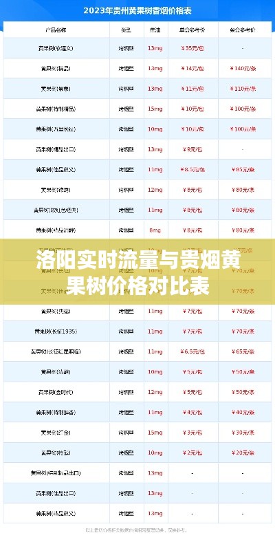 洛阳实时流量与贵烟黄果树价格对比表