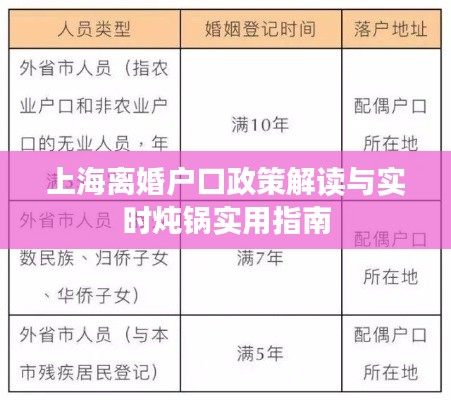 随着社会的不断发展,人们对于生活品质的追求也日益提高,在这其中,婚姻与居住的问题始终是热点话题,特别是在上海这样的大都市,离婚户口政策以及与之相关的各类话题更是备受关注,本文将围绕“上海离婚户口最新政策”这一主题展开,同时结合实时炖锅这一现代家居烹饪工具,为读者呈现一篇深度解读与实用指南。
