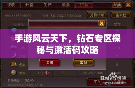 咱们重点聊聊钻石专区,钻石专区是手游风云天下中一个非常特殊的存在,这里有着丰富的资源、独特的玩法和珍贵的道具,对于手游爱好者来说,钻石专区无疑是一个充满诱惑的地方。