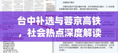 台中补选和蓉京高铁的消息,是我们这个时代变迁中的两个重要窗口,通过关注这些话题,我们不仅能够了解社会的动态变化,还能感受到时代的脉搏,在这个信息爆炸的时代,让我们保持敏锐的洞察力,理性参与社会公共事务,为社会的进步和发展贡献自己的力量,我们相信,在每一个人的共同努力下,我们能够创造一个更加美好的未来。