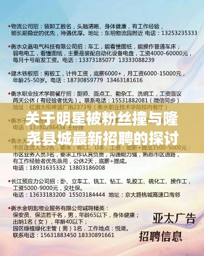 针对明星被粉丝撞与隆尧县城最新招聘这两个话题,公众应保持理性态度,关注事实真相,避免被不实信息误导,企业和招聘机构也应诚信经营,遵守法律法规,为公众提供真实可靠的招聘信息。