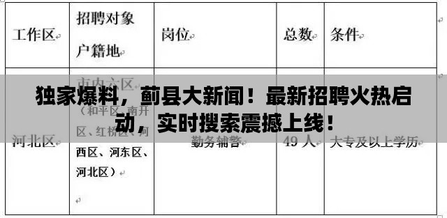 独家爆料,蓟县大新闻!最新招聘火热启动,实时搜索震撼上线!