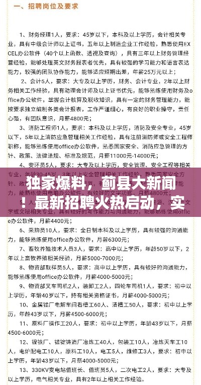 嘿,小伙伴们,听说蓟县又有大动作啦!最新招聘火热开启,同前端实时搜索震撼上线,简直让人眼前一亮,今天就来跟大家聊聊这个新鲜事儿,希望能给你们带来一些惊喜和收获。