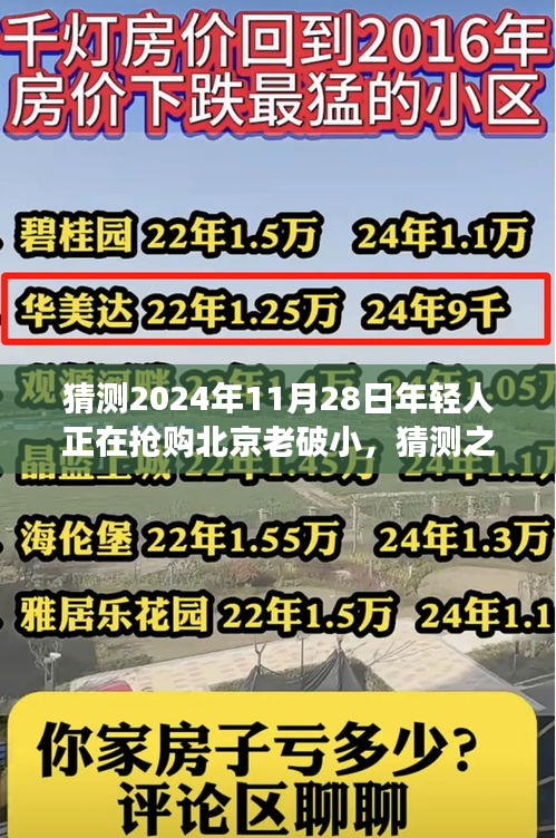 随着时代的发展,年轻人的生活方式和观念在不断变化,在繁华的首都北京,老破小的房子成为了一种新的时尚和追求,我们将一起走进这个充满活力和热情的时代,猜测在不久的将来,特别是在特定的日期——2024年11月28日,年轻人抢购北京老破小的现象背后的故事,让我们一起揭开这个时代的神秘面纱,看看年轻人在追逐什么样的梦想和生活方式。
